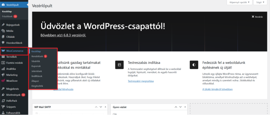 - a bal oldalsávban a wocomercen belül a rendelésknél lehet megtekinteni a leadott rendeléseket