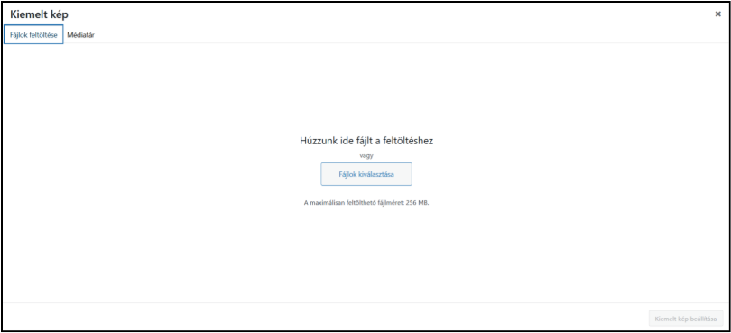 Ha kiemelt képet szeretnél beállítani a bejegyzéshez, a jobb oldali oldalsávban kattints a Bejegyzés fülre, majd válaszd a Kiemelt kép beállítása lehetőséget. Itt kiválaszthatsz egy már feltöltött képet, vagy feltölthetsz újat.