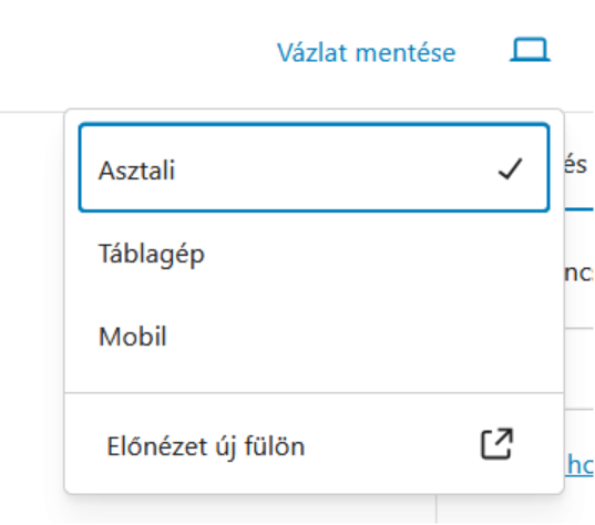 Az előnézetet a jobb felső sarokban lévő számítógép ikonra kattintva tekintheted meg. Itt mobil és tablet nézetben is megjelenítheted a bejegyzést.