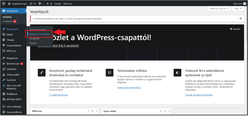 Új bejegyzések hozzáadása WordPress-ben