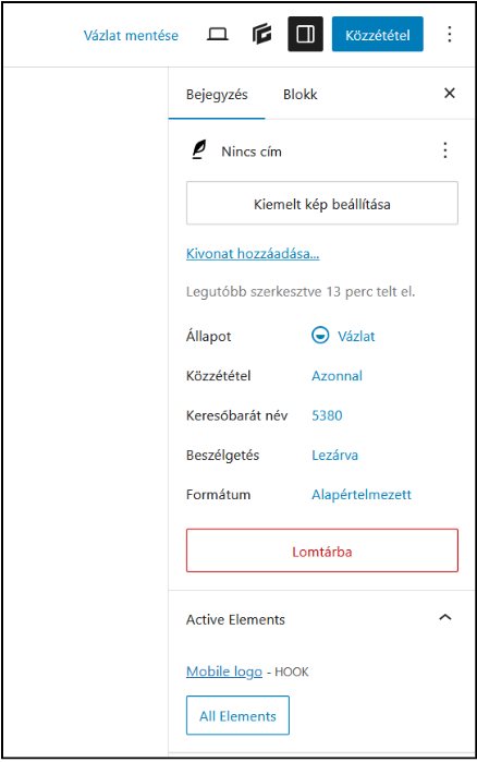 Az Összes bejegyzés oldalon találod a korábban létrehozott bejegyzéseket. Ha rákattintasz valamelyik címére, újra megnyithatod és szerkesztheted. Ilyenkor a jobb felső sarokban a ‘Közzététel’ helyett ‘Mentés’ gomb jelenik meg.